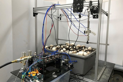 為解決美國(guó)蘑菇產(chǎn)業(yè)目前面臨的勞動(dòng)力短缺的問(wèn)題,美國(guó)賓夕法尼亞州立大學(xué)助理教授Long He和團(tuán)隊(duì)開(kāi)發(fā)出能用于采摘和修剪雙孢菇的吸盤機(jī)器人,這款電動(dòng)氣動(dòng)裝置專為雙孢菇設(shè)計(jì),能利用機(jī)器視覺(jué)系統(tǒng)看到并瞄準(zhǔn)單個(gè)蘑菇,摘下、修剪菇莖的末端,然后將它們放入收集盒中。